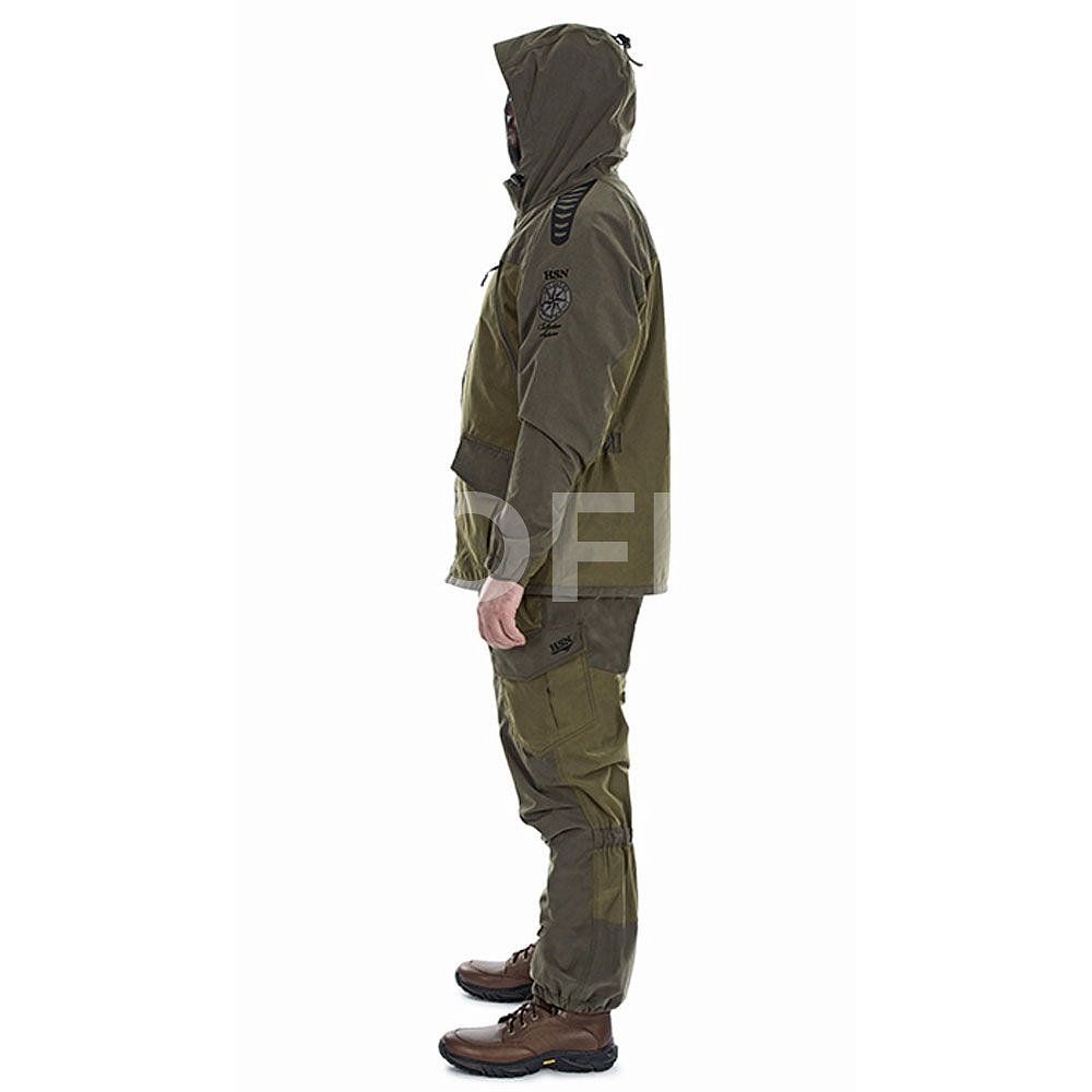 Костюм RAMBLER выполнен из мягкой, бесшумной ткани Islandiya с отличными ветро- и влагозащитными свойствами, а также повышенной износостойкостью. У костюма нет утеплителя, подклад — флис.