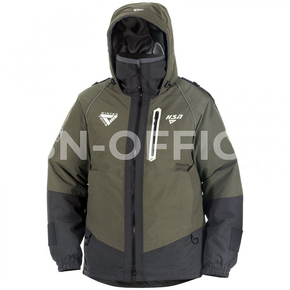 Высокий воротник куртки защищает от ветра. Удобный глубокий капюшон с жестким ветрозащитным козырьком. Глубокие утепленные карманы на куртке специально созданы для размещения всего необходимого для рыбалки и согрева рук. На рукавах есть специальные крепления для спасалок (идут в комплекте с костюмом) для оперативного использования в случае падения со льда в воду. Перфорация ткани на спинке костюма и рукавах способствует быстрому вытеканию накопившейся воды в куртке, что облегчает выход из воды при случайном падении.