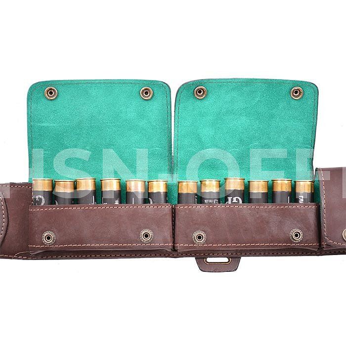 Изготовлена в традиционной форме из натуральной кожи. Надежно держит 16 патронов в лузах.